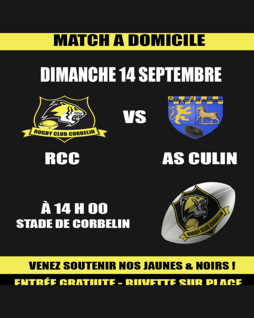 Le Rugby Club de Corbelin vous donne rendez-vous pour un match à domicile qui s’annonce intense et engagé.
